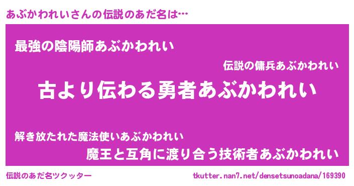 | 意味不明あだ名 | 『永久保存あぶかわれい』 |