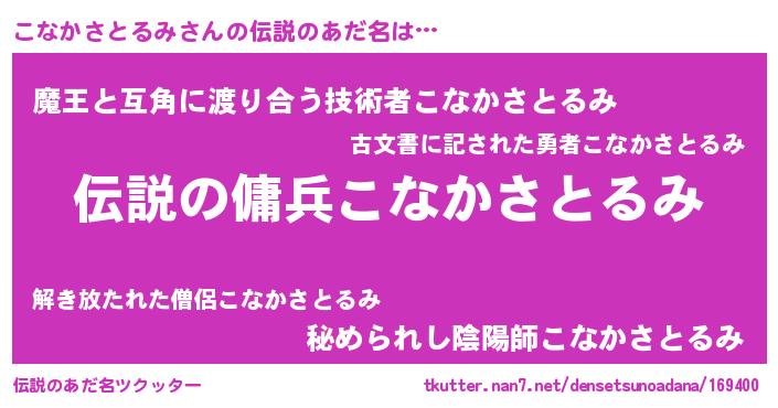 | 女子向けラノベタイトル風あだ名 | 『こなかさとるみなんてお断りですっ。』 |