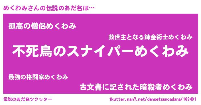 | 肩書あだ名 | 『めくわみ上級大将』『めくわみ総統』 |