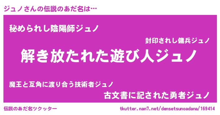 | ヒーロー風カッコイイあだ名 | 『銀牙騎士ジュ』『ウルトラジュノマン』 |