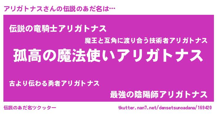 | 胡散臭い通販商品みたいなあだ名 | 『信頼と実績のサプリメント…その名も「アリガトナス」』 |