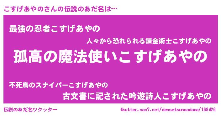 | 男性向けラノベタイトル風あだ名 | 『ダンジョンにこすげあやのを求めるのは間違っているだろうか』 |
