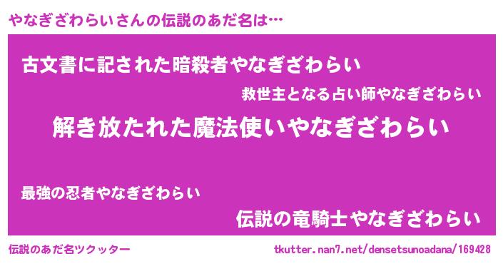 | ポケモン風あだ名 | 『ヒヤナギザワライ』『ヤーナイ』 |