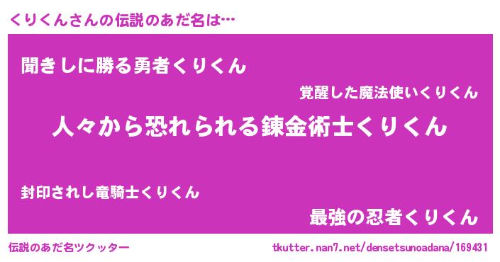 | ヒーロー風カッコイイあだ名 | 『仮面クリダー』『正義の使者くりくん』 |