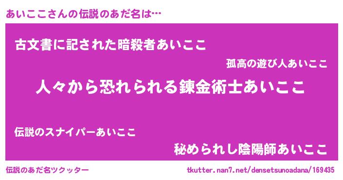 | ヒーロー風カッコイイあだ名 | 『仮面アイダー』『愛の使者あいここ』 |