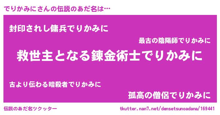 | 意味不明あだ名 | 『住所不定無職でりかみに(93歳)』 |