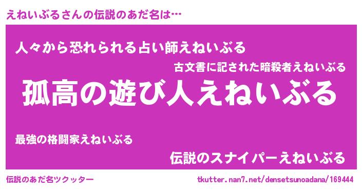 | ヒーロー風カッコイイあだ名 | 『暗黒騎士エネ』『仮面エネダー』 |