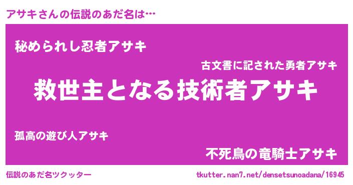 | ヒーロー風カッコイイあだ名 | 『仮面アサダー』『天空の使者アサキ』 |