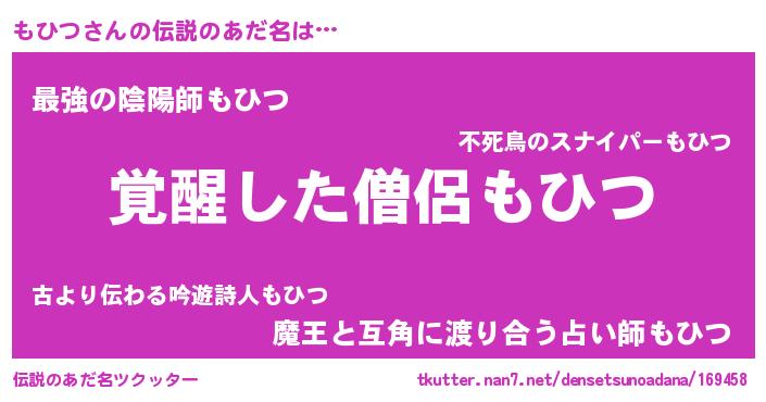 | 意味不明あだ名 | 『とにかく怪しいもひつ』『自称もひつ』 |