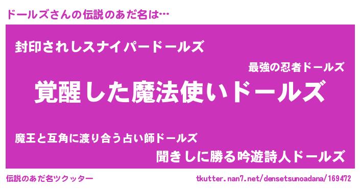 | 男性向けラノベタイトル風あだ名 | 『ドールズに滅ぼされるだけの簡単なお仕事です』 |