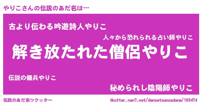 | 意味不明あだ名 | 『とにかく怪しいやりこ』『自称やりこ』 |