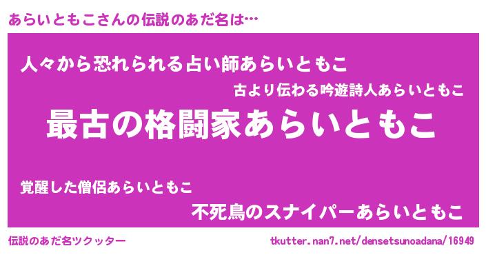 | 意味不明あだ名 | 『あらいともこフォーエバー』 |