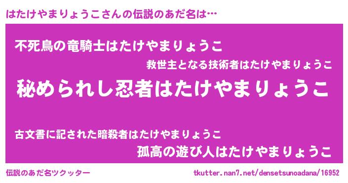 | ファンタジー風あだ名 | 『エターナルハタケヤマリョウコー』 |