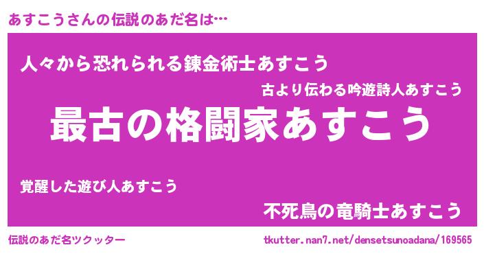 | ヒーロー風カッコイイあだ名 | 『ウルトラあすこうマン』『仮面アスダー』 |