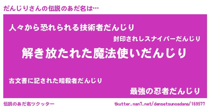 | ヒーロー風カッコイイあだ名 | 『銀牙騎士ダン』『正義の使者だんじり』 |