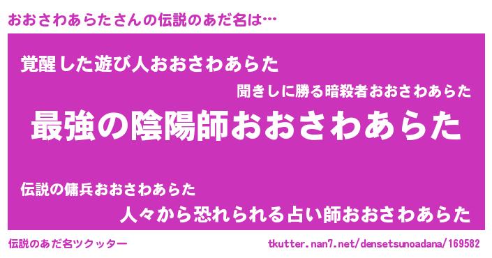 | 意味不明あだ名 | 『自称おおさわあらた』 |