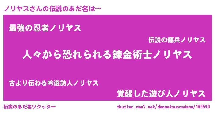 | 意味不明あだ名 | 『住所不定無職ノリヤス(98歳)』 |