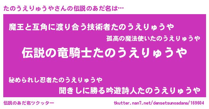 | ヒーロー風カッコイイあだ名 | 『スーパータノウエリュウヤ』 |
