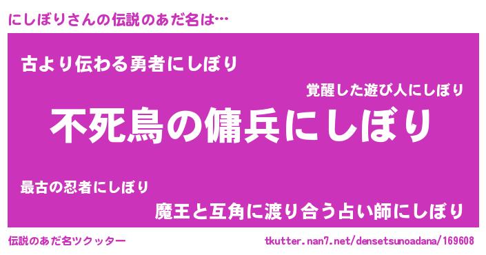 | 胡散臭い通販商品みたいなあだ名 | 『モテモテ間違いなし水晶球…その名も「にしぼり」』 |