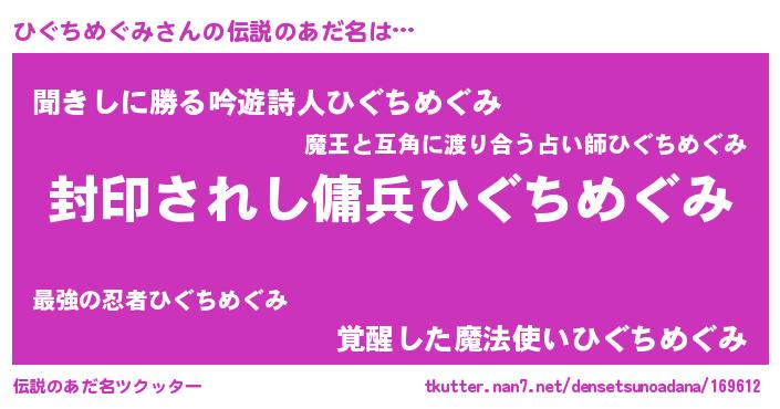 | 胡散臭い通販商品みたいなあだ名 | 『億万長者になれる水晶球…その名も「ひぐちめぐみ」』 |