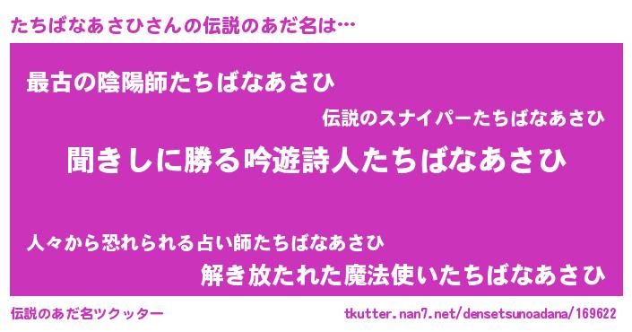 | ヘコむあだ名 | 『たちばなあさひ(笑)』『なまこ酢』 |