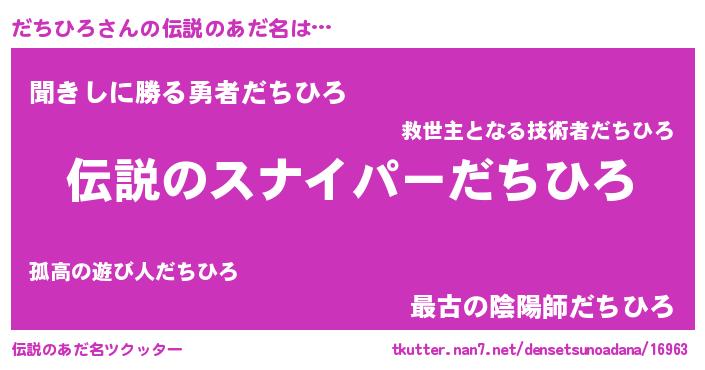 | ヒーロー風カッコイイあだ名 | 『スーパーダチヒロ』『ネオダチヒロ』 |