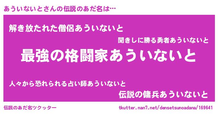| 胡散臭い通販商品みたいなあだ名 | 『あなたにだけ特別に提供する100年もののヴィンテージワイン…その名も「あういないと」』 |