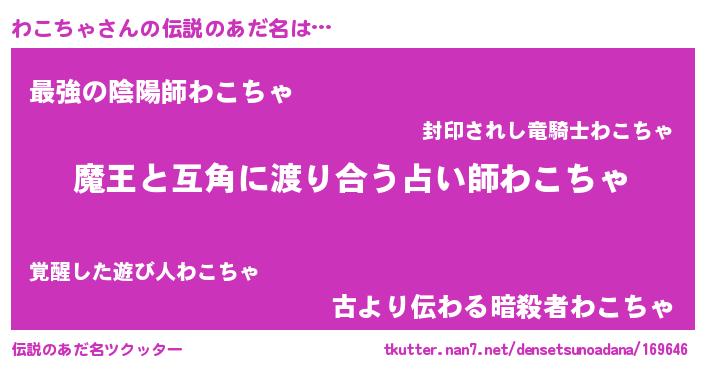 | ヒーロー風カッコイイあだ名 | 『慈愛の使者わこちゃ』『ネオワコチャ』 |