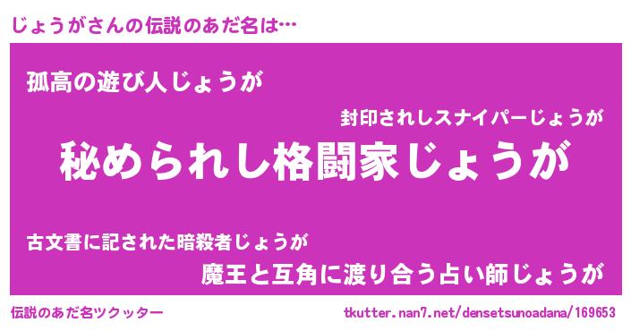 | ヒーロー風カッコイイあだ名 | 『ウルトラじょうがマン』『幻影騎士ジョ』 |