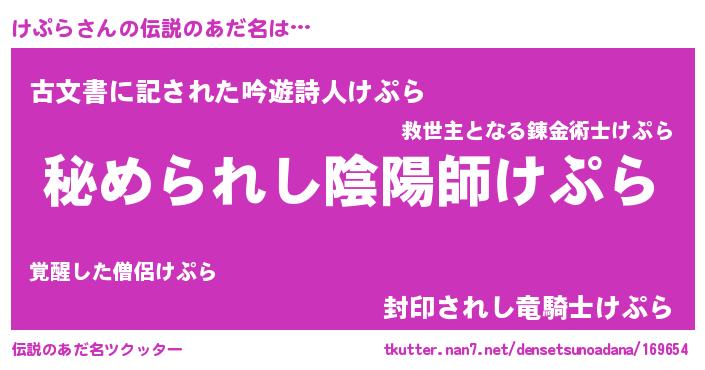 | ヒーロー風カッコイイあだ名 | 『仮面ケプダー』『ウルトラけぷらマン』 |