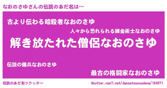 | 意味不明あだ名 | 『自称なおのさゆ』『永久保存なおのさゆ』 |