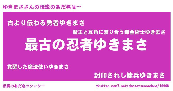 | ファンタジー風あだ名 | 『エターナルユキマサー』『ゼユキトゥ』 |