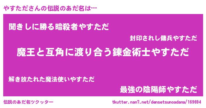 | ヒーロー風カッコイイあだ名 | 『友情の使者やすただ』『ネオヤスタダ』 |