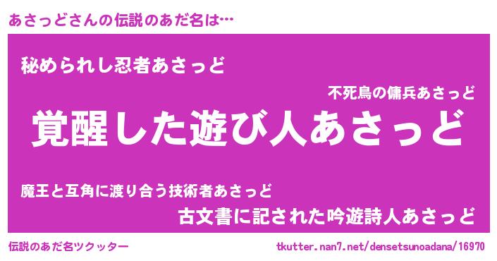 | ヒーロー風カッコイイあだ名 | 『幻影騎士アサ』『ウルトラあさっどマン』 |