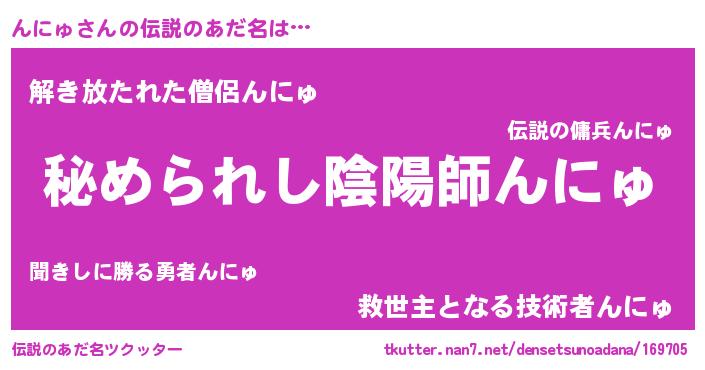 | 男性向けラノベタイトル風あだ名 | 『魔弾の王とんにゅ』 |