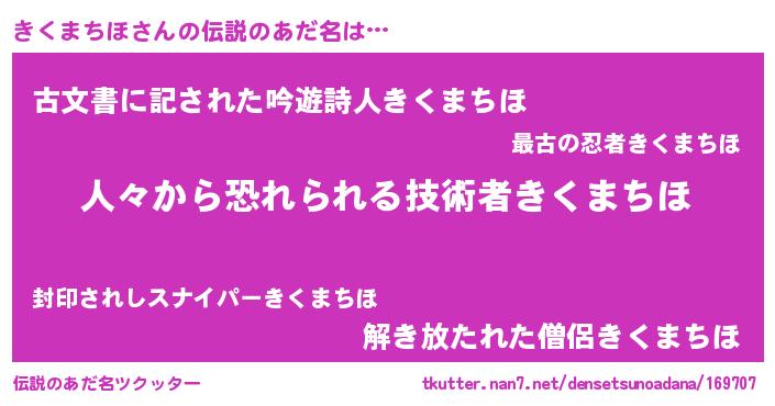 | 男性向けラノベタイトル風あだ名 | 『キクマチホスレイヤー』 |