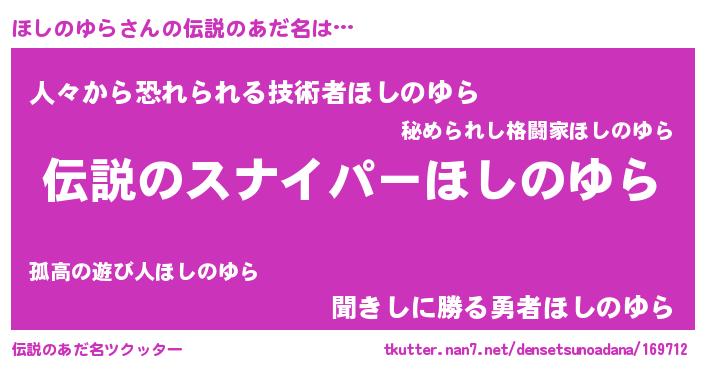 | ヒーロー風カッコイイあだ名 | 『ウルトラ戦士ホシノユラ』 |
