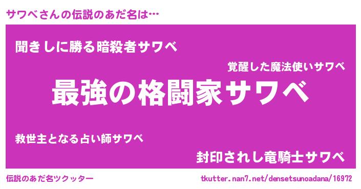 | ポケモン風あだ名 | 『サワキング』『サワベダネ』 |