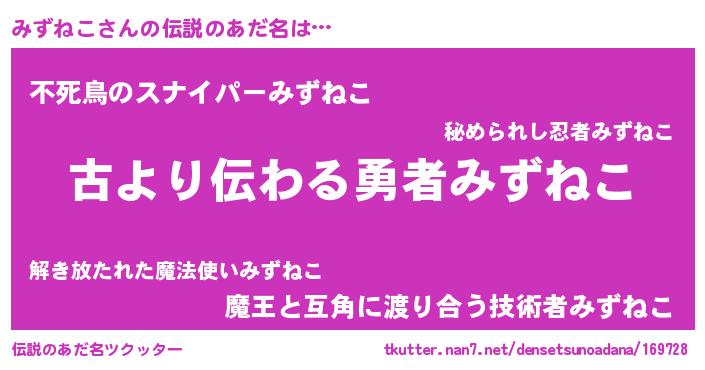 | 意味不明あだ名 | 『永久保存みずねこ』『自称みずねこ』 |