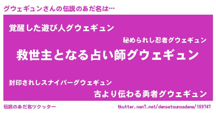 | ヒーロー風カッコイイあだ名 | 『天空の使者グウェギュン』 |