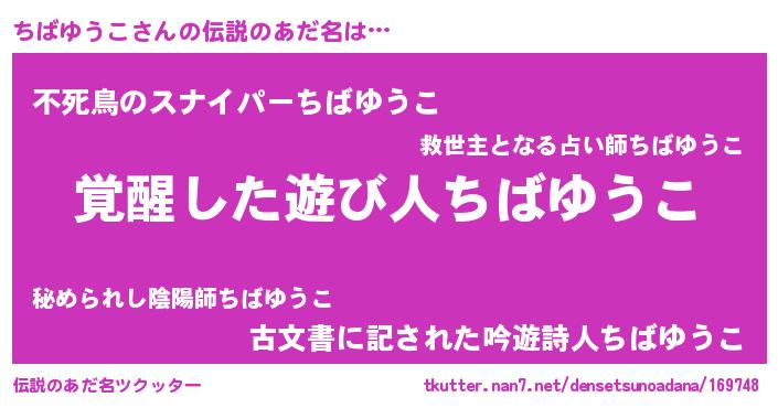 | 男性向けラノベタイトル風あだ名 | 『ちばゆうこの嫁は女の子じゃないと思った?』 |