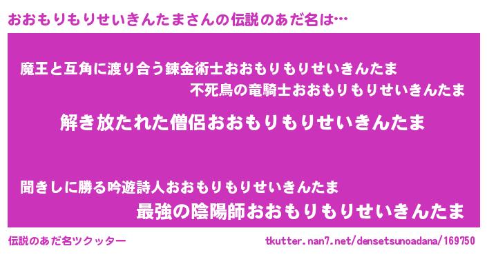 | 男性向けラノベタイトル風あだ名 | 『ダンジョンにおおもりもりせいきんたまを求めるのは間違っているだろうか』 |