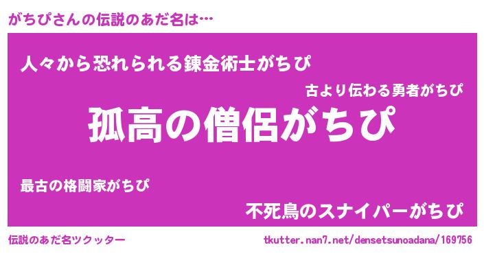 | ヒーロー風カッコイイあだ名 | 『黄金騎士ガチ』『友情の使者がちぴ』 |