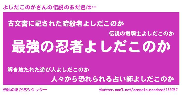 | 意味不明あだ名 | 『よしだこのかフォーエバー』 |