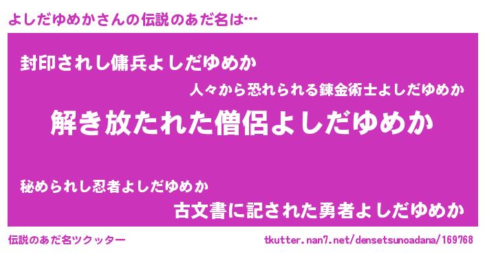 | 意味不明あだ名 | 『自称よしだゆめか』 |