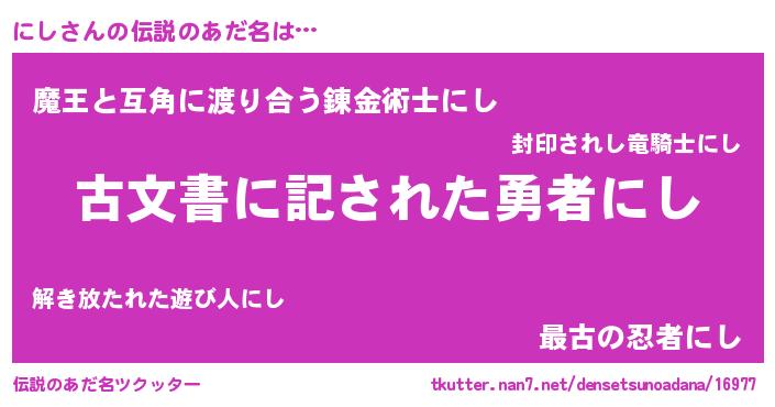 | ヒーロー風カッコイイあだ名 | 『ネオニシ』『愛の使者にし』 |