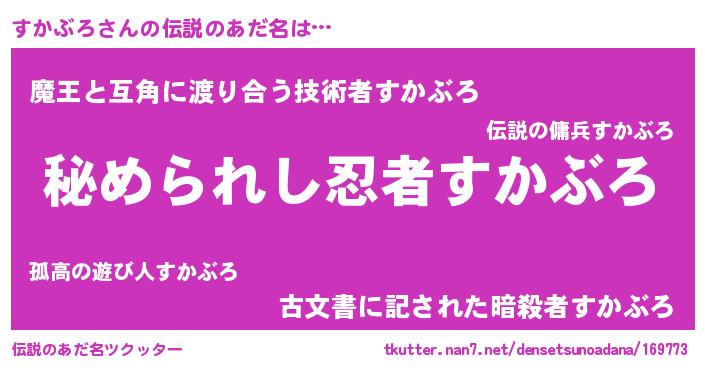 | ヒーロー風カッコイイあだ名 | 『ウルトラすかぶろマン』『ネオスカブロ』 |