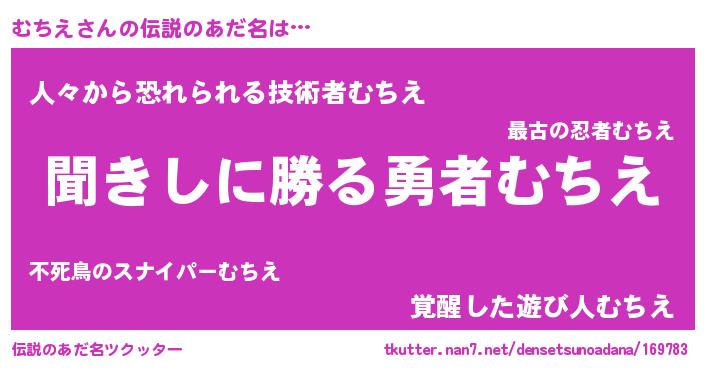 | 意味不明あだ名 | 『永久保存むちえ』『めかぶ科むちえ属』 |