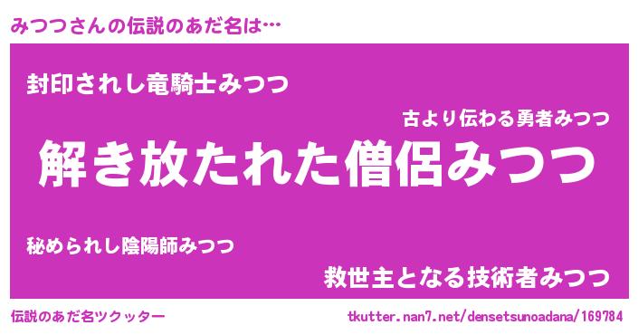 | ヒーロー風カッコイイあだ名 | 『最強戦士ミツツ』『天弓騎士ミツ』 |