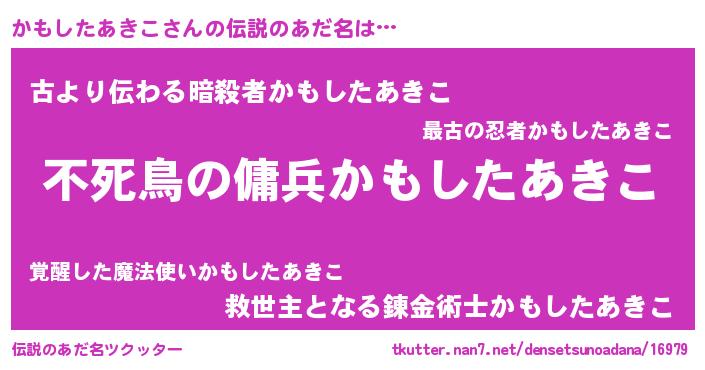 | ヒーロー風カッコイイあだ名 | 『スーパーカモシタアキコ』 |